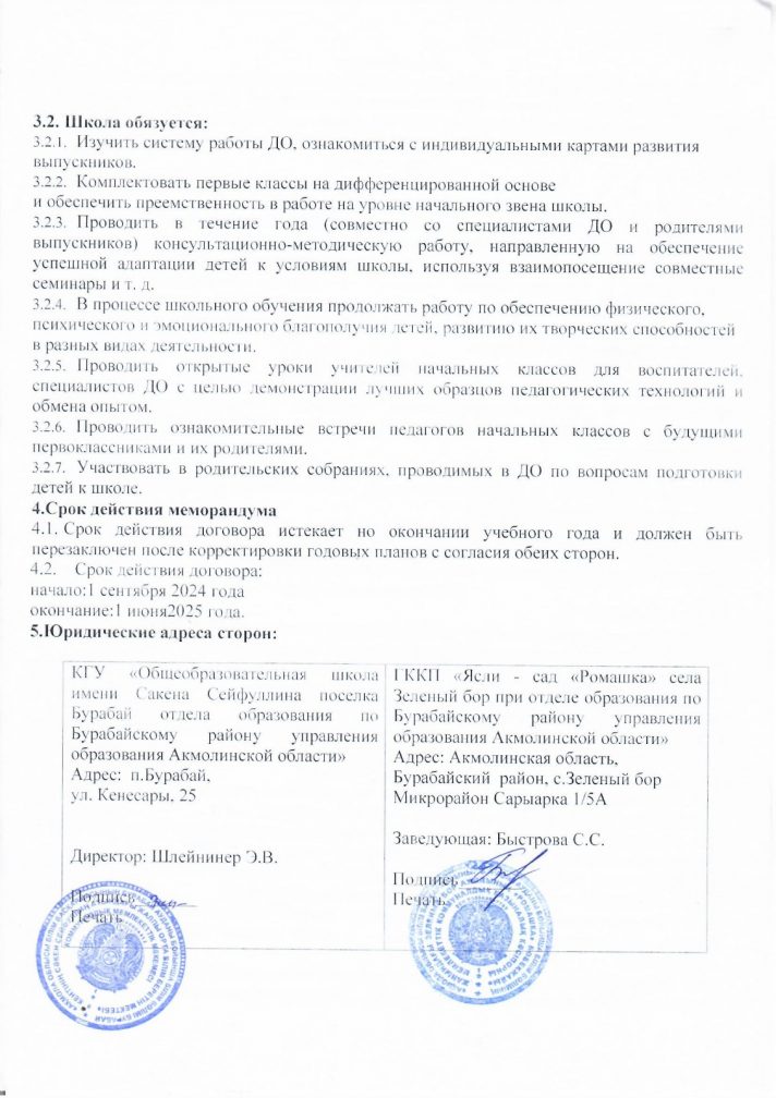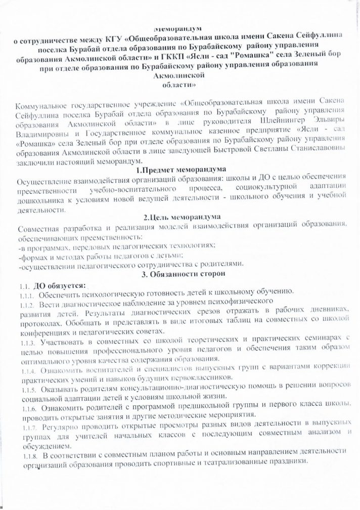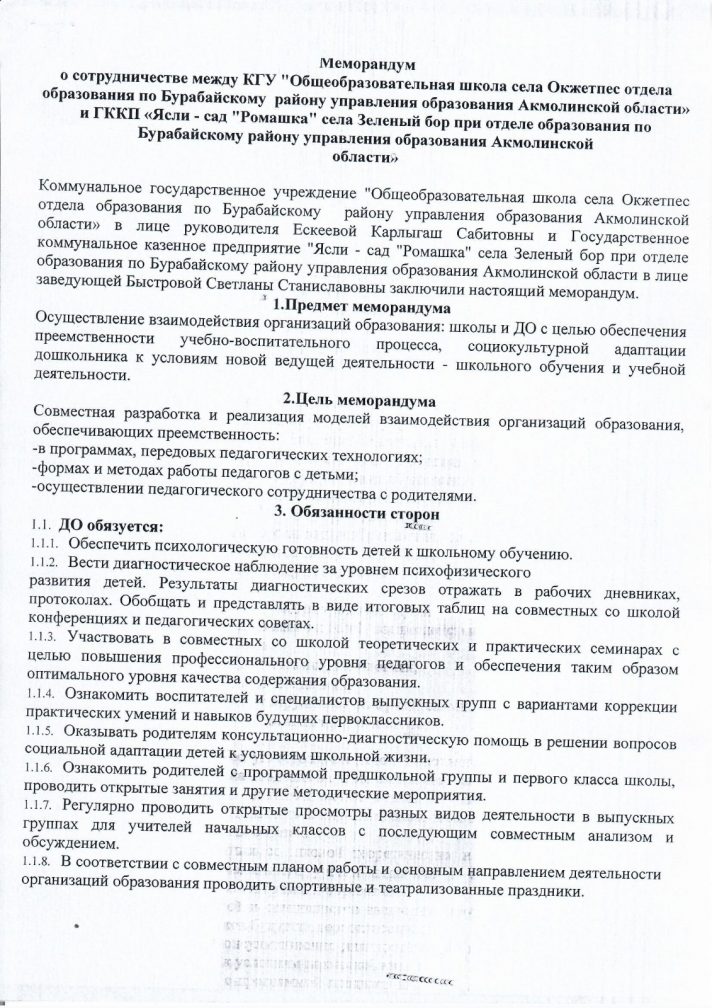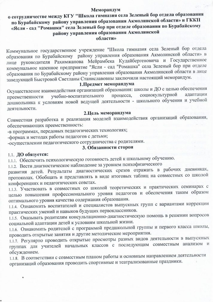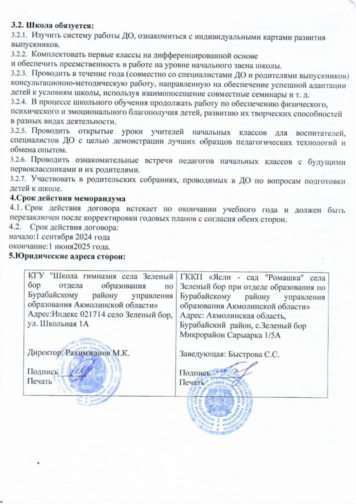 Меморандум о сотрудничестве начальных школ и ДО на 2025-2026 учебный год