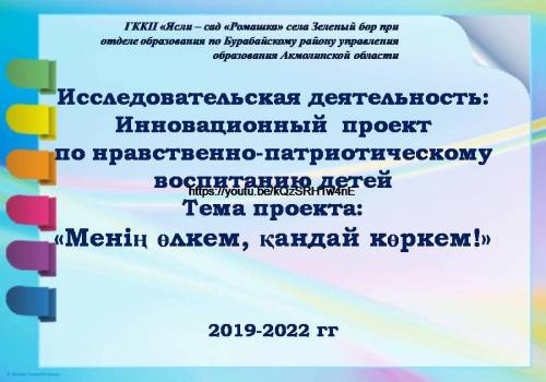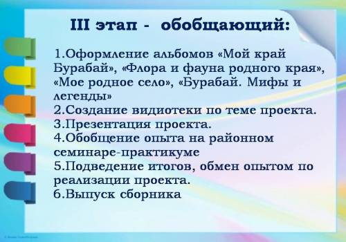 Обобщение опыта работы над проектом "Менің өлкем, қандай көркем!"